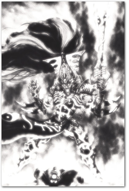 i also spied my roomie rockin’ the warhammer 40k: dawn of war beta last nite, and the game looked absolutely ridiculous. his eldar army was roaming the bombed-out streets, taking on ork troops and pink(?) space marines. the game is definitely the spiritual descendant of starcraft, which is pretty apt because starcraft was almost certainly influenced by the warhammer 40k universe. i was waiting for fonz to bring out the badass motherfucker himself, the eldar avatar (i painted one for myself back in high school)…but a game bug or something seemed to prevent him from making one. fuckers. anyhoo, definitely a game to watch out for. warhammer 40k is complete badass.