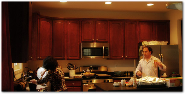 an hour train ride later, i got to my sis’ place with the rest of the new extended clan. mom, dad, his mom and his dad, aunt sharon, and aunt sharons friends. it was a pretty nice and big gathering, but we had enough food to feed double that…oops. we ended up barely putting a dent in the food. on the bright-side tho, i carved up the turkey all nice and purty…woot me. it was an early thanksgiving dinner too, since the ‘rents didnt like driving late at night, and i wanted to scootch back to manhattan to start my doing nothings.