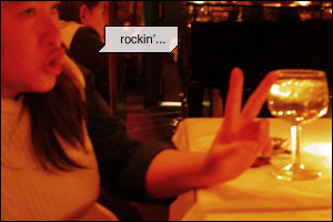 yesterday was my friends birthday…so a group of us had din at chez josephines. mmm…frenchy. it was all good, except being surrounded by giant paintings of naked parisian strippers. ok, jk…that wasnt a bad thing. jk again…that was jus a take-off to go on a tangent. on purpose this time. b/c i was thinking during this dinner, “gosh…something to write about on xanga tomorrow.” which led me to think….shite, this is what a web journal is. mining moments from ur life and writing about ur trivial daily rhetoric. as if writing something (anything) on a daily basis substantiates ur existence. *ponders…*
