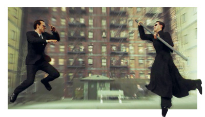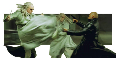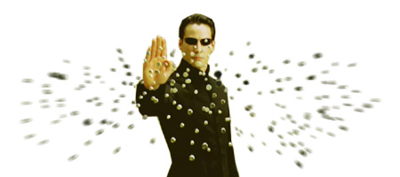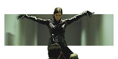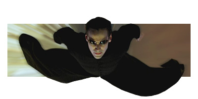 ah…ive waited so long for this week…matrix, woo! things kick off wednesday with a reshowing of old school matrix at a friends pad, and then a 9:45 showing on thurs at the 34th st loews. wooha! this is seminal work here…i remember seeing the trailer for the first time and going, “holy shit, didja see how they pan-n-scanned and extrapolated the intermediate frames?!” jk, it was jus the holy shit part. i still have a research paper i did from third year for a technology and theory class, outlining the progenesis of the film semiotics with the architecture of control…still one of my best.