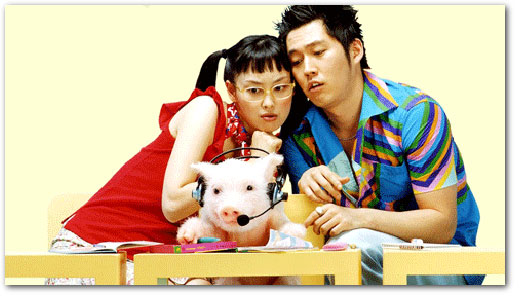 hmm, i dont think the milk before bedtime is working anymore. i think i need to find something new to insure that im not waking up in the middle of the nite…grr. anyhoo, last nite was my first “official” outing to the nyaff, after fridays aborted plans to see hero. i met up with margie (who i havent seen in almost a year) in st. marks for some foodage at oh! taisho. we grabbed starbucks afterwards and then started making our way down to the anthology to sit in line for the korean flick please teach me english. eli and her friend…um…asian girl #2 (im terrible with names)…met up with us in line, and we all filed into the anthology. heres the quick rundown…clever, funny as shit, odd pacing, and the korean-american sister…holy shit she cant act. the movie however has a pig that understands english, which is always a big thumbs-up.