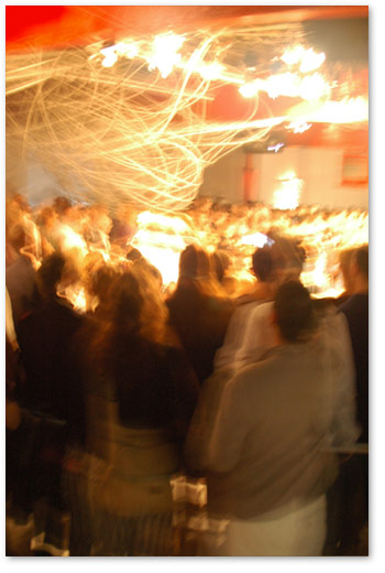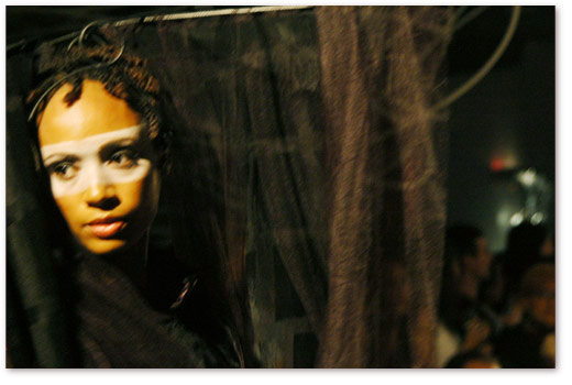 thursday nite was some fancy-pants biche de bere fashion/lighting/architecture event going down in a libeskind-designed space in nj. it sounded coo, so you know…couldnt pass it up. met up with m and we headed over to the chelsea piers, where we were shuttled over to jersey via water taxi, then limo’d to the space. limo…word. the space was filled with various light installations, and the fashion show was some kind of weird. it was coo tho, even tho the dj sucked. mingled, wined, etc…and i pretended to be some kind of important photographer and got a nice spot to take shots from. wee!