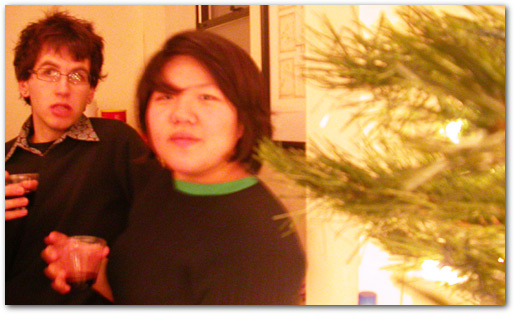 i was woken up abruptly saturday morning by a call from dora. i was actually pretty surprised to see that it was almost 1 in the afternoon. ick! i wonder how long i wouldve slept if she hadnt called. dora dropped by b/c her laptop’s ethernet was pooing on itself, and i was going to take a look at it while she scoured the internet for holiday vacation packages for her family. her laptop would get a connection for all of 30 seconds before dying on itself…so after 2 hours of pathetic twiddling, i gave up. *shrug* we met up with mike to have tapas for din at la paella, then headed to the upper east side for anna and sally’s holiday party. they had wine and cookies up the wazoo, and i think more cookies sitting in the oven…craziness. there were no airing of grievances or feats of strength, but there were alot of cookies…word.