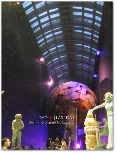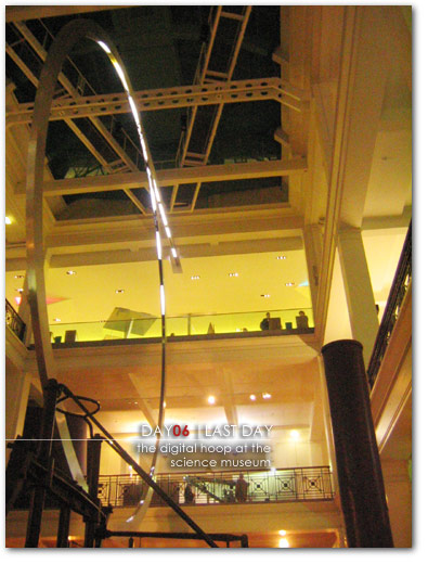 ah…day 06, our last full day in london. time flies, and we still had a list of things we hadnt even hit yet. we wanted to get schooled, so we headed out to the trio of museums of the victoria and albert, the natural history, and the science museum…all next to each other. they were packed, but we still got edumacated…and even made a lunch pitstop at one last english pub, the hoop and toy(??). we wandered around later at nite, grabbed french foodage in soho, then headed back to our hotel to pack up. we caught our flight the next day, and got to sit two rows behind the alleged uk tween girl band girls aloud. what the fuck were they doing in coach?
