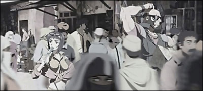friday…rock. cant wait til tomorrow…me, fish, pho, and troche are gonna go see the bebop movie at angelikas. i went fanboy and reserved the tix in advance…jus to be on the safe side. last yr when i tried and do the walk-up during its limited release, i was left standing at the box office. grr. sunday gonna go visit my sis in nj too. we’re gonna do familial things. like…nothing, and sitting around. in the meantime tho, i got this happiness to fill me up for the morning. its the newest animatrix…by shinichiro watanabe (bebop, baby!) its one of the best stylistically so far. its retro-tech 20’s look is pretty amazing to watch. oddly enuf, its not listed on the animatrix site yet. i got the link off of aicn. anyhoo…heres some trinity goodness. (its rockin’ 100+ mgs…so save as)