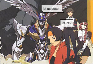 i read alot of reviews incessantly comparing it to eva, saying it ripped off this and that…so ill start there. upon my initial viewing, alot of similarities did strike me. but even tho eva is fresh in the minds of american otakus, it is nearly a decade old. so lets quickly run thru the comparisons. boy discovers self…sure its in eva, but its also in a hundred other animes. robots are actually the enemy’s being used against them….another similarity, but its been done too….its jus a really coo plot device, k? hmmm…this third one i was abt to point out was a spoiler…so lemme jus skip that. anyhoo…overall, yea, there are similarities. some overt. but if theres jus one similarity that one should point out, its that both series set out to subvert the normal conventions of the robot genre….so thats the way ill see it. rahxephon is unique in its own way…with its play on time, sound, and real cool looking mechs. the characters that inhabit this world are nicely fleshed out…each playing their own small crucial role in the overall anime. alot of care is taken to fully realize jus about each and every character. so when the shit hits the fan, you’ll kno why. one negative tho that i have to point out. the anime is confusing as hell. especially towards the end when everybody’s shit is hitting the fan. what the hells up with the ending?? (i kno, btw…but even knowing doesnt help when u actually watch it) every small detail counts, and if u missed one sentence that was uttered 4 episodes ago, u risk losing track of things later on. its that minute. i backtracked a few times jus to refresh what someone had said, when what they said resurfaced in a later episode. ick. but density such as this should be appreciated…it shows the great lengths the producers put into the anime. watch rahx and judge it on its own merits…not on another animes. ull prolly like it more.
